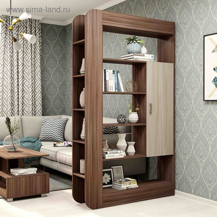 Стеллаж-перегородка с полками Студия, 1200х300х2040, Шимо темный/Шимо светлый