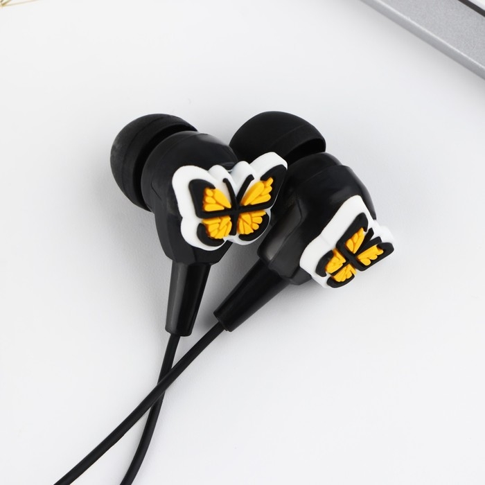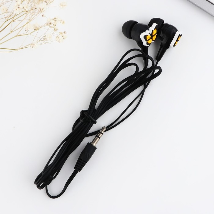 Вакуумные наушники с яркими дополнительными элементами на открытке будут радовать необычным дизайном и хорошим качеством звука.
