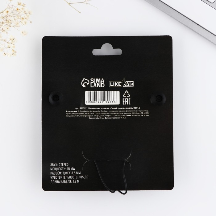 Наушники вакуумные на открытке «Сделай громче», мод.OBT 1.5 120 см