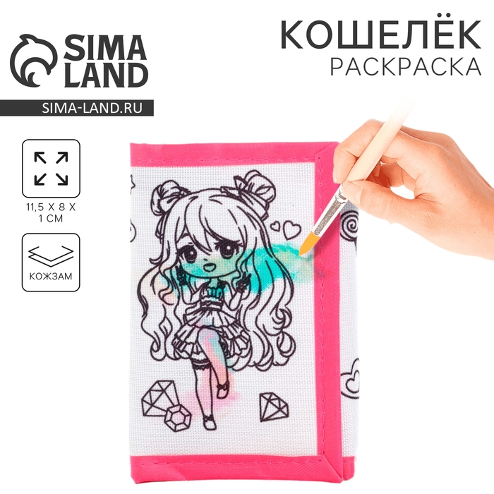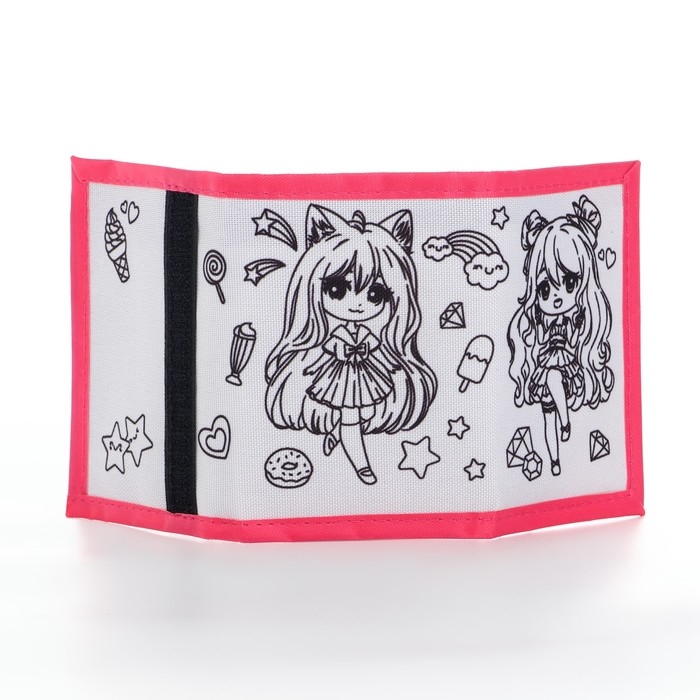 Кошелек на липучке под раскраску "Аниме девочка"