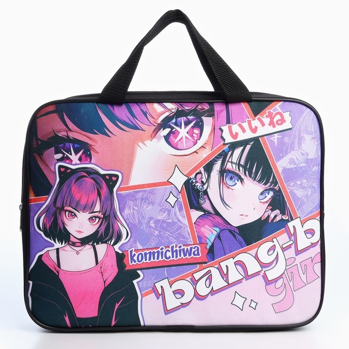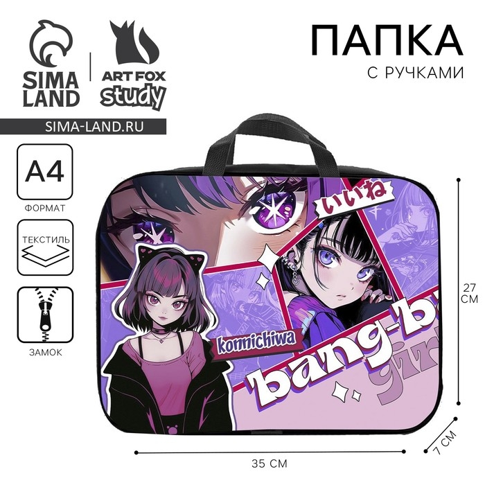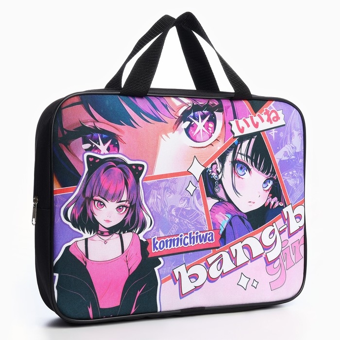 Папка для труда А4 на молнии текстиль 70мм 350 х 270 дев «1 сентября: Аниме bang»