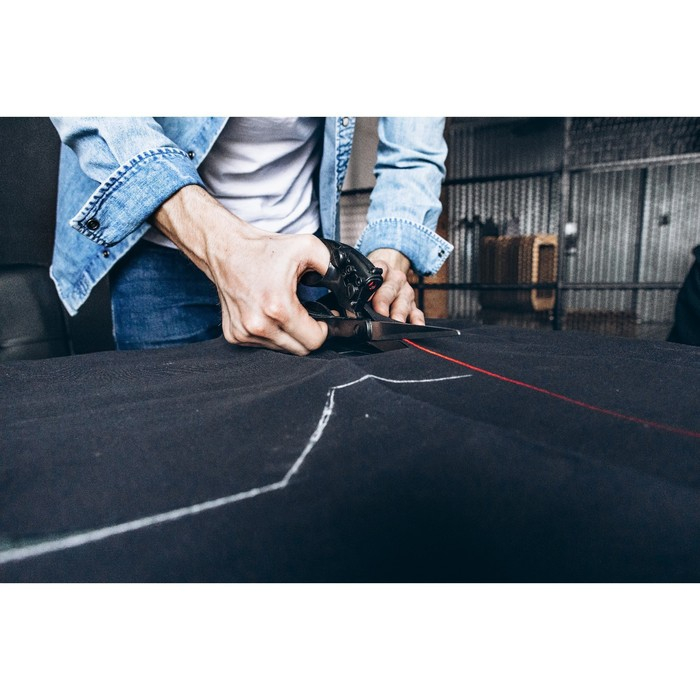 Закройные ножницы с лазерной указкой позволяют отрезать ровные куски ткани и не чертить линии на материале.
