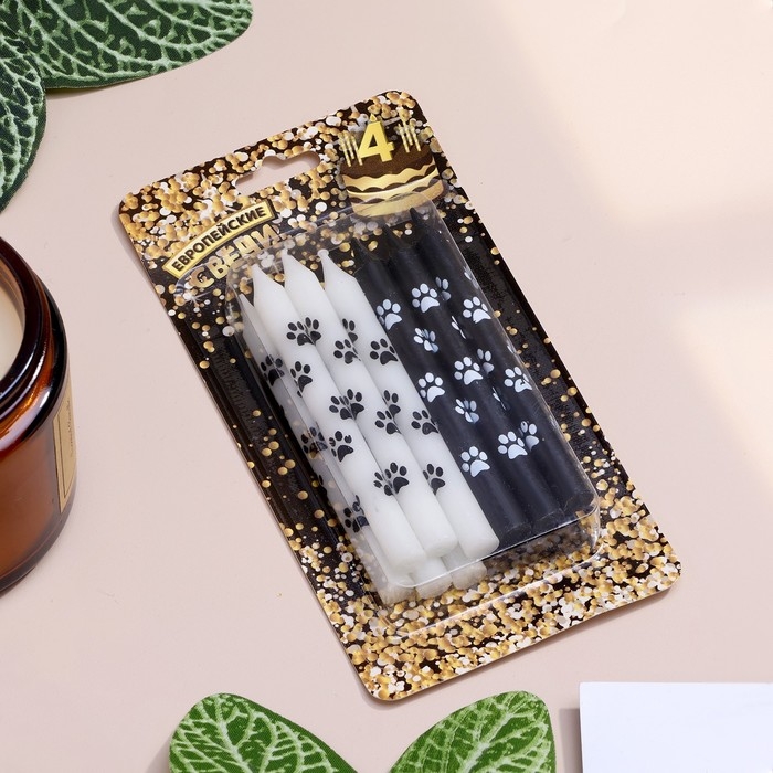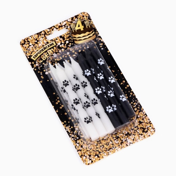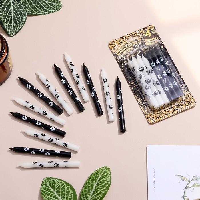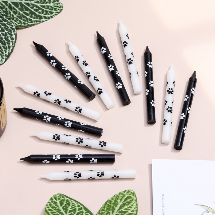 Набор свечей для торта "Лапки", 12 шт, 8 см, черные и белые