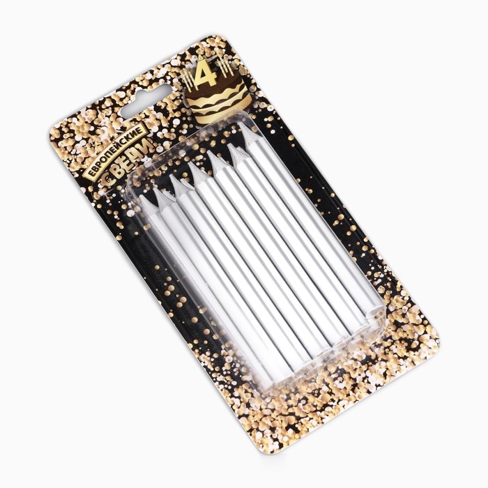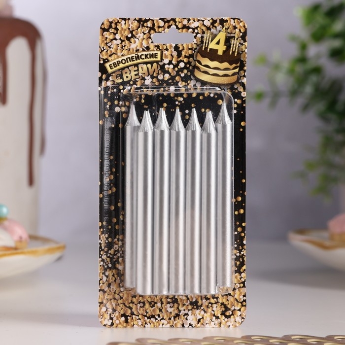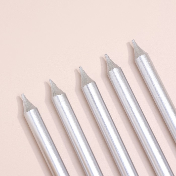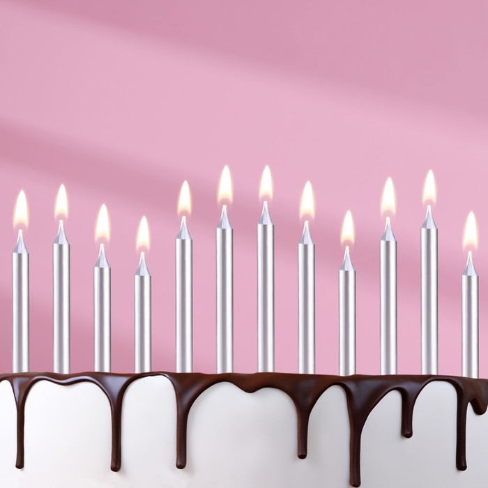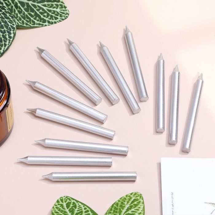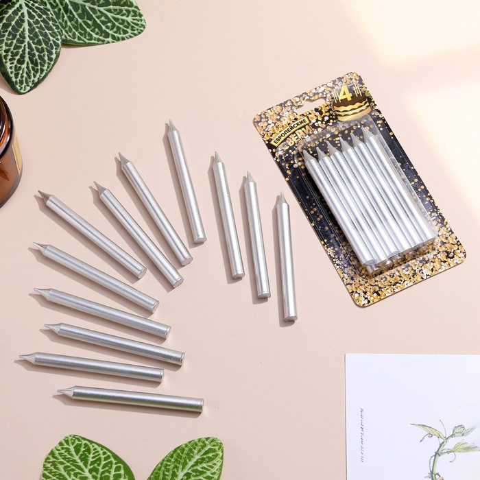 Набор свечей для торта "Спарк", 12 шт, 8 см, серебряный металлик