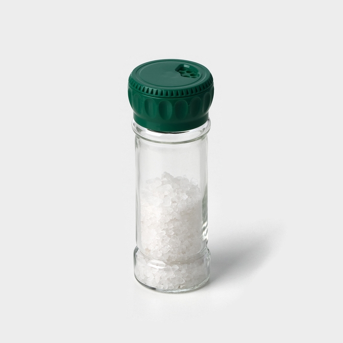 Солонка стеклянная трехпозиционная, 115 мл, цвет зелёный