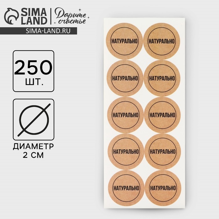 Наклейки для бизнеса «Натурально», 250 шт, 2 х 2 см