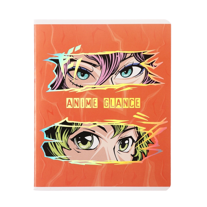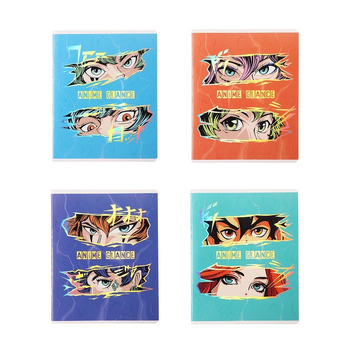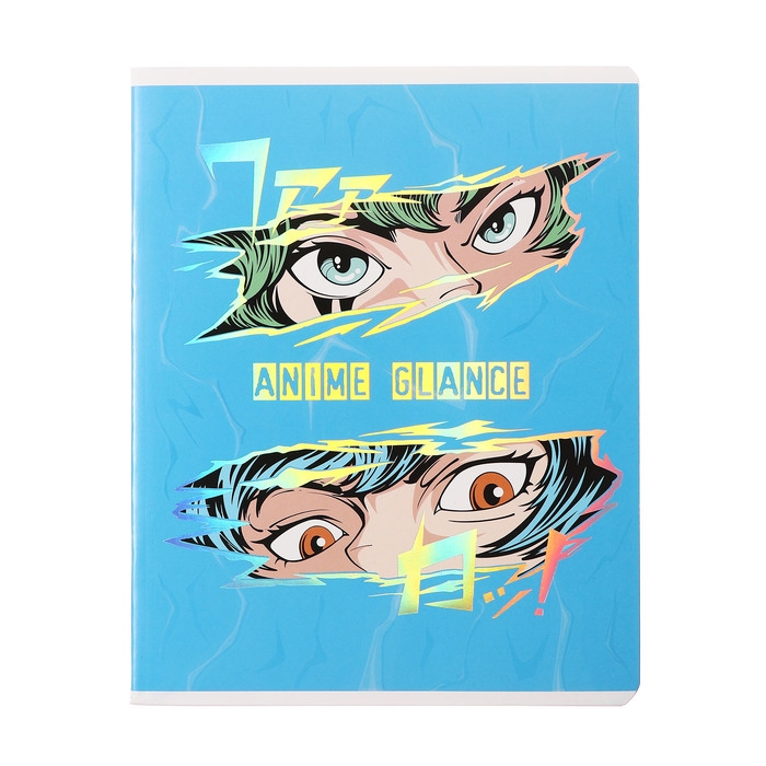 Тетрадь 48 листов в клетку "Аниме глаза", обложка мелованный картон, выборочный УФ-лак, тиснение фольгой, блок 70 г/м2, МИКС