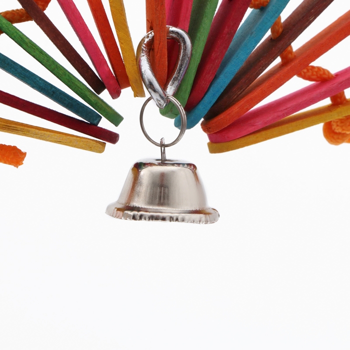 Игрушка для птиц "Веер" с колокольчиком, разноцветная, 20 х 20 см
