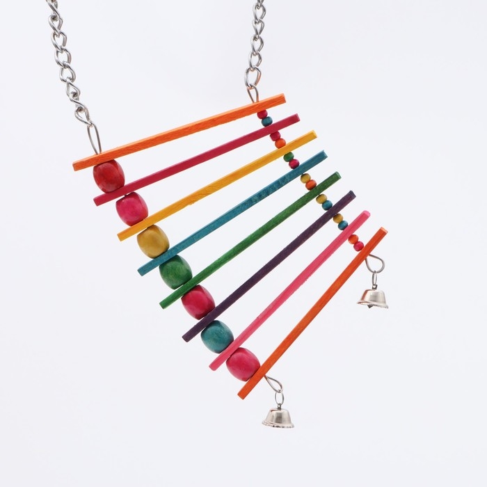 Яркая и увлекательная игрушка для птиц «Радуга» с колокольчиками — это отличный способ порадовать вашего пернатого друга. Изготовленная из безопасных материалов, она привлекает внимание птицы своими яркими цветами и звенящими колокольчиками, что стимулирует её активность и помогает в развитии.