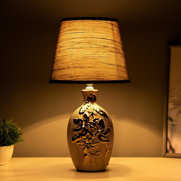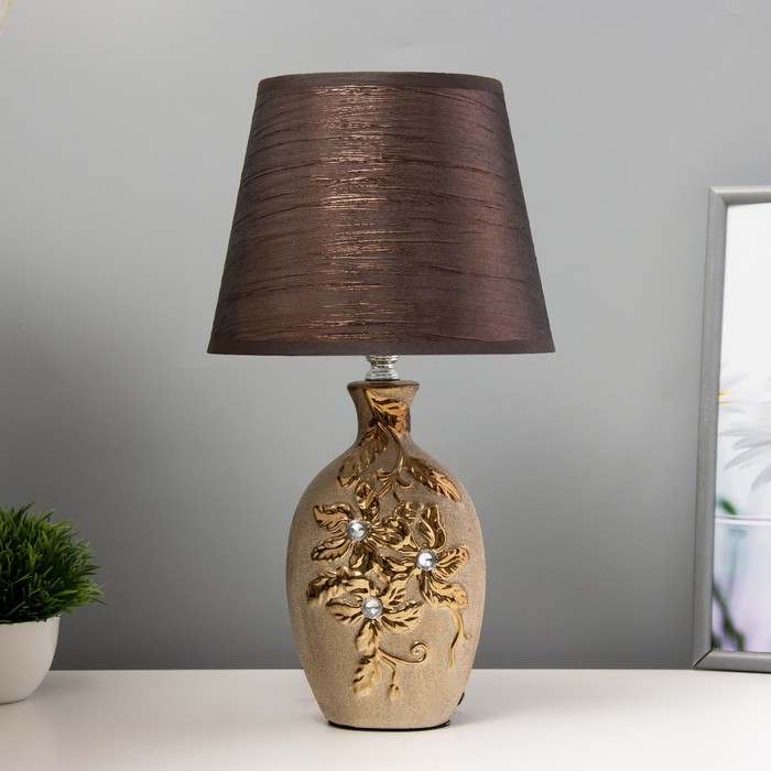 Лампа настольная керамика "Цветы-лиана" бронза, стразы Е14 40Вт 38х20х20 см