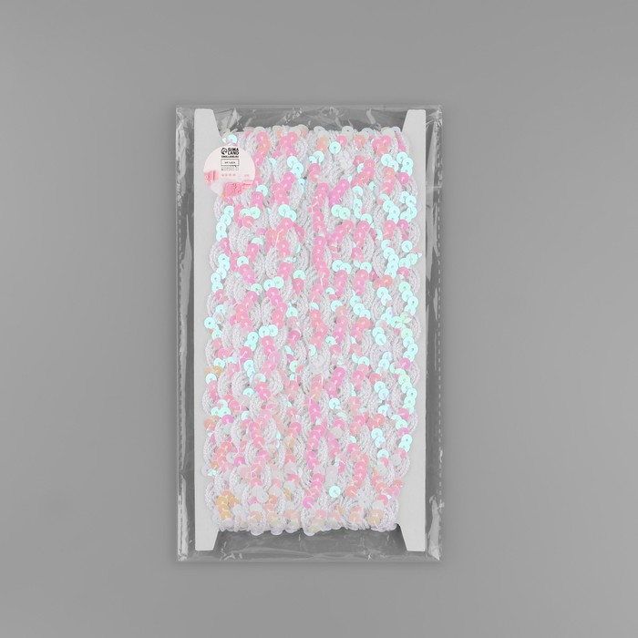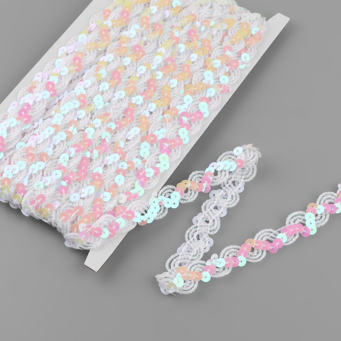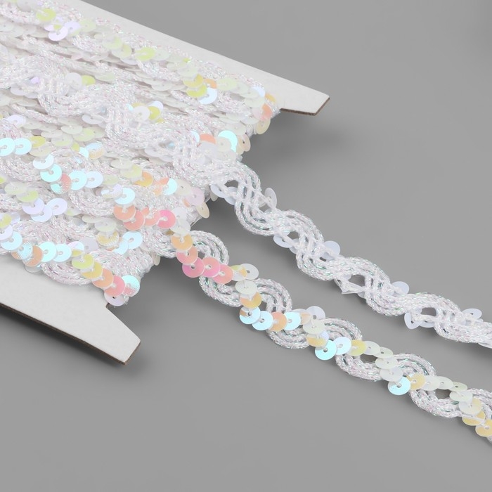 Тесьма декоративная с пайетками, 15 мм, 9,1 ± 0,5 м, цвет белый/перламутровый