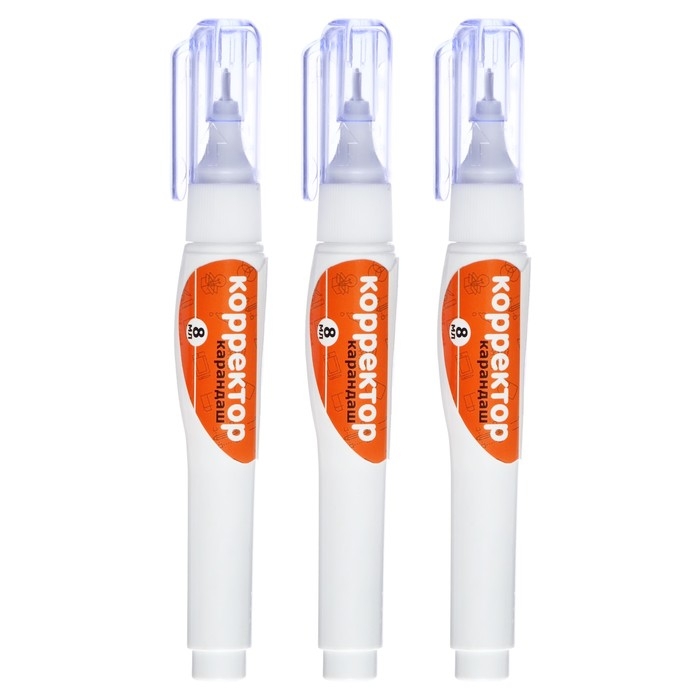 Набор 3 штуки Корректор-карандаш 8 мл, металлический наконечник, на основе растворителя