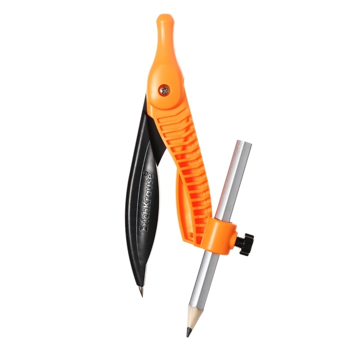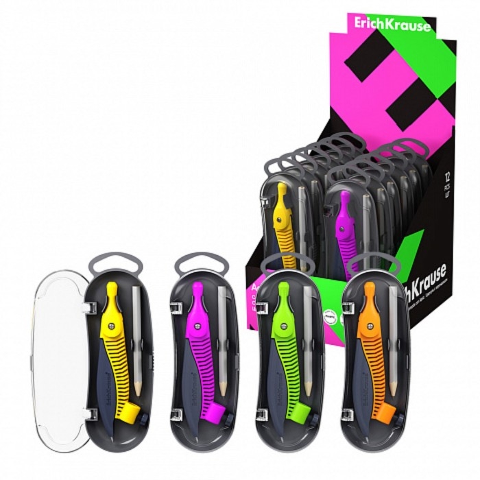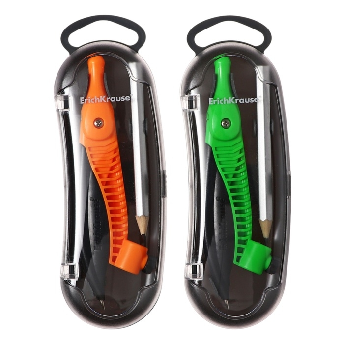 Циркуль пластиковый ErichKrause "Accent", 122мм, с карандашом, пенал, микс