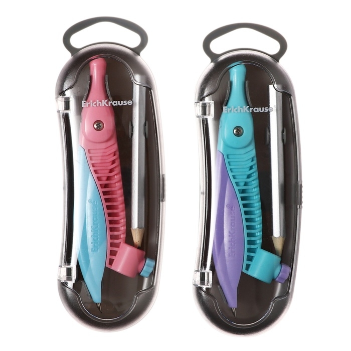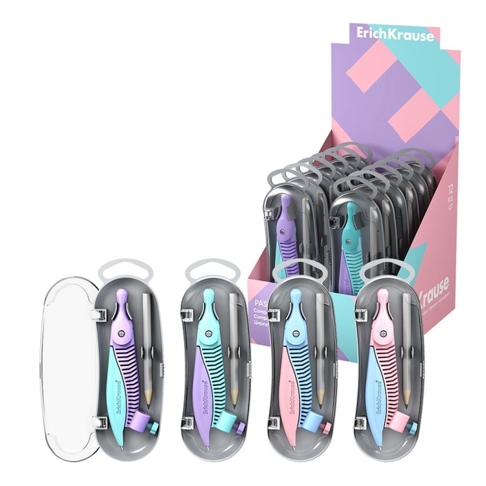 Циркуль пластиковый ErichKrause "Pastel", 122мм, с карандашом, пенал, микс