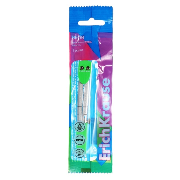 Циркуль металлический ErichKrause "Neon", 120мм, блистер, зеленый
