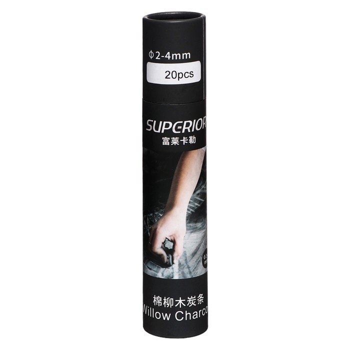 Уголь натуральный 20 штук, диаметр-2-4мм, в картонном тубусе, черный