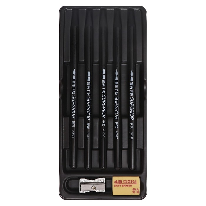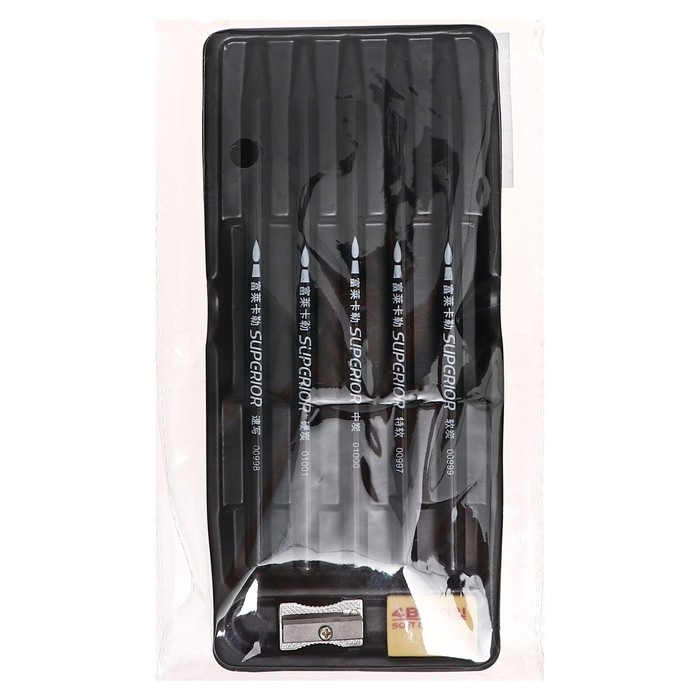 Карандаши цельнографитные, черные 5 штук + ластик + точилка
