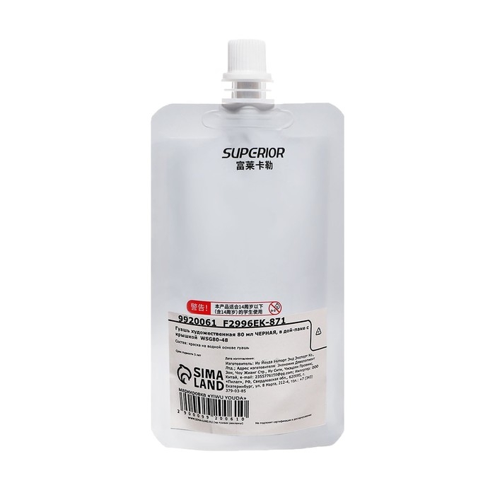 Гуашь художественная 80 мл, в дой-паке с крышкой, черный