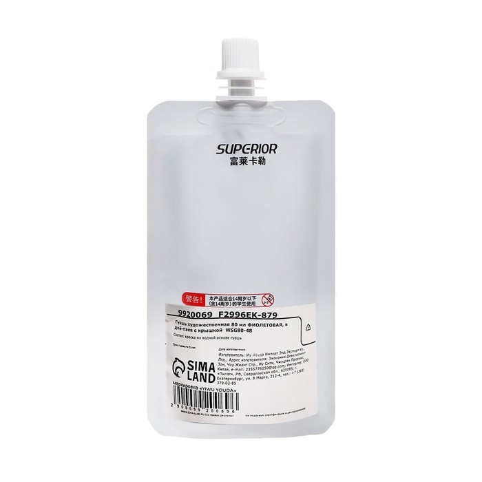 Гуашь художественная 80 мл, в дой-паке с крышкой, фиолетовый