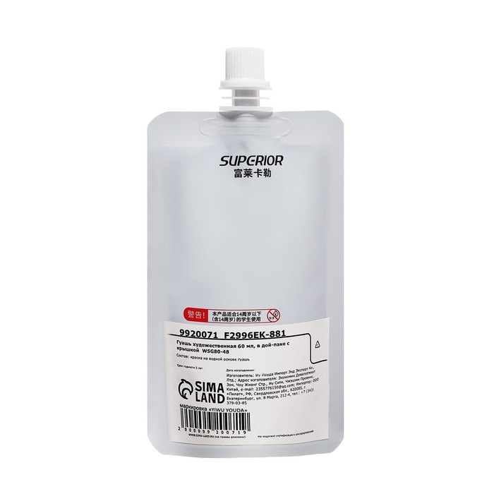 Гуашь художественная 60-70 мл, в дой-паке с крышкой, серебряная