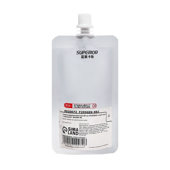 Гуашь художественная 80 мл, в дой-паке с крышкой, розовый
