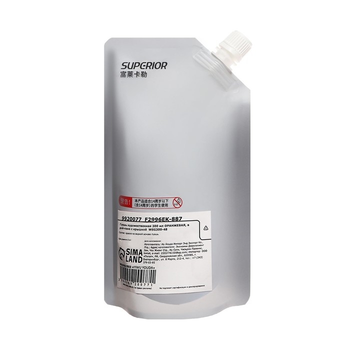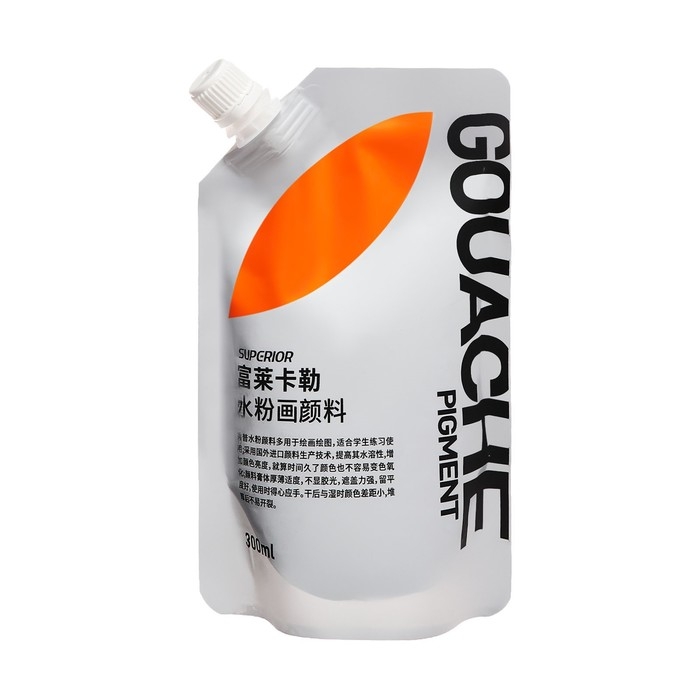 Гуашь художественная 300 мл, в дой-паке с крышкой, оранжевый