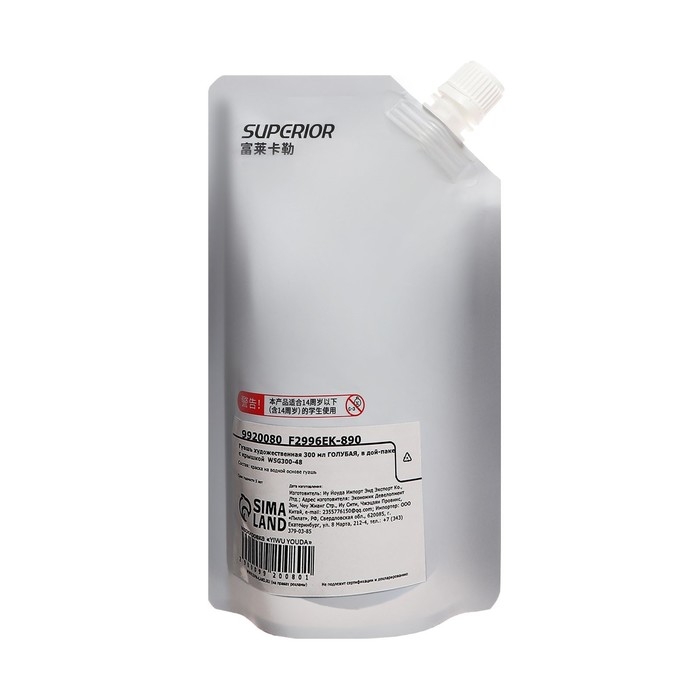 Гуашь художественная 300 мл, в дой-паке с крышкой, голубой