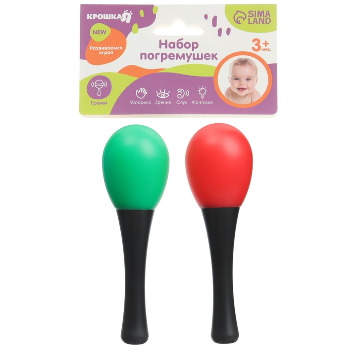 Набор погремушек «Перкуссионные маракасы», 2 шт., цвет МИКС, Крошка Я
