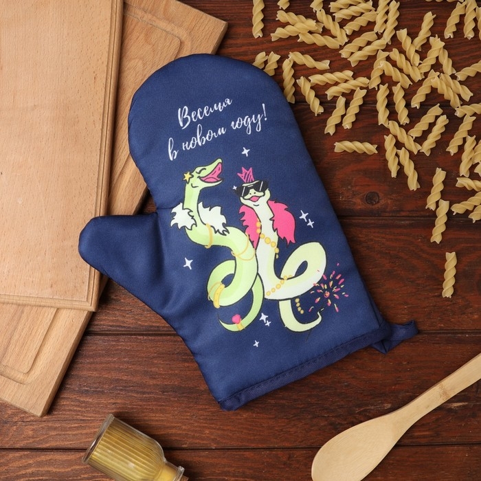 Новый год. Символ года 2025. Змея. Варежка-прихватка "Веселья" 20х27см,100% п/э