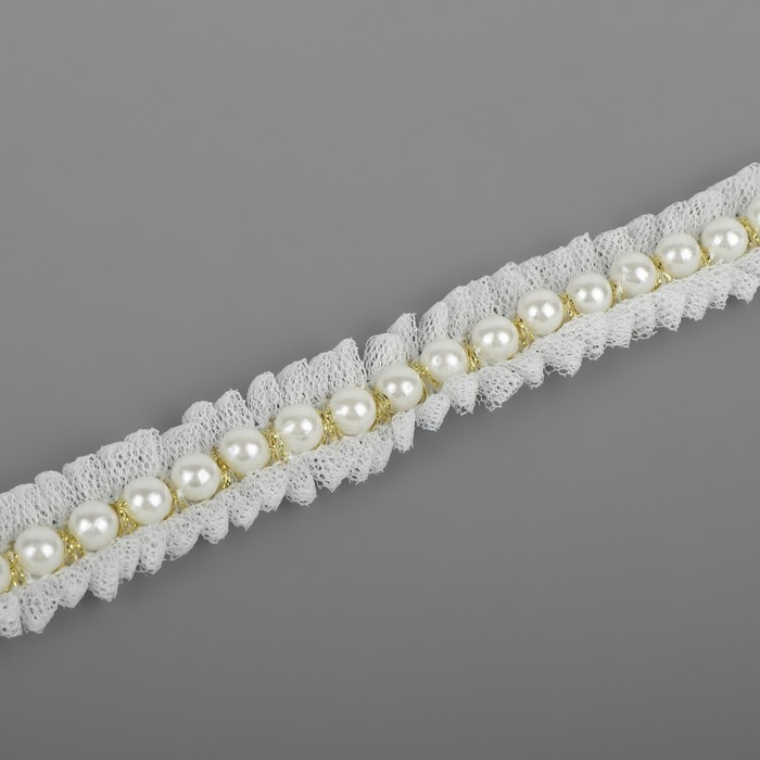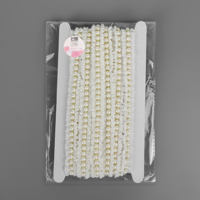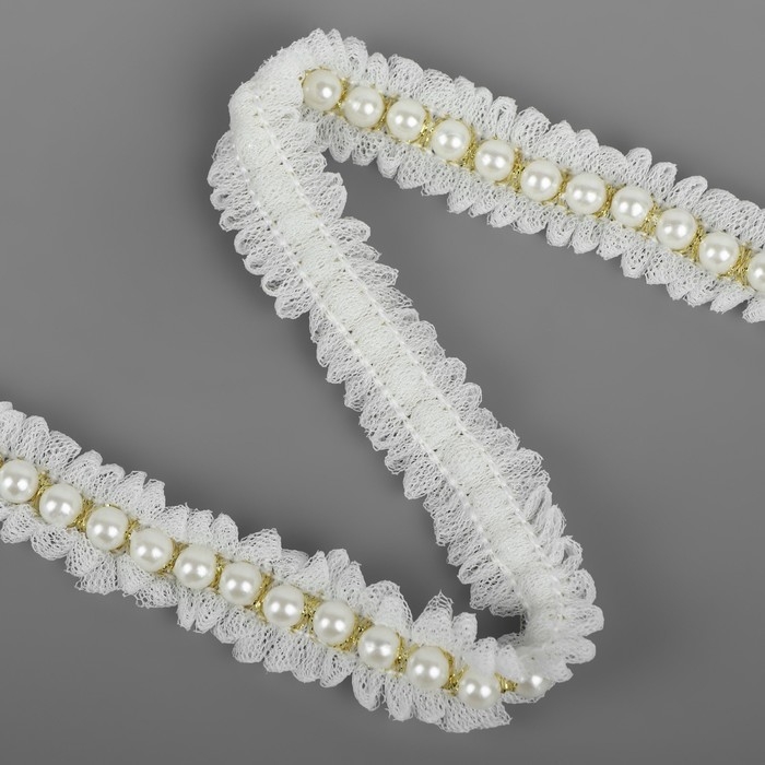 Рюш с бусинами, 20 мм, 4,5 ± 0,5 м, цвет белый