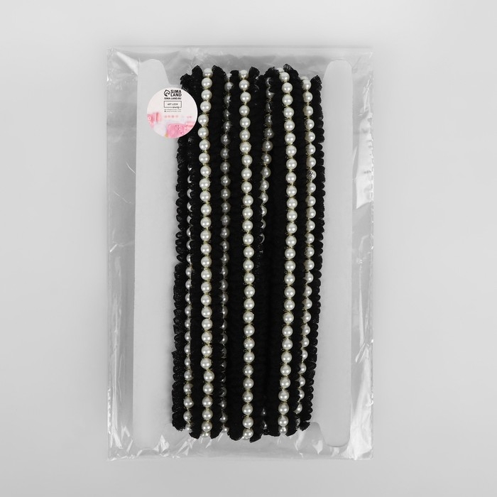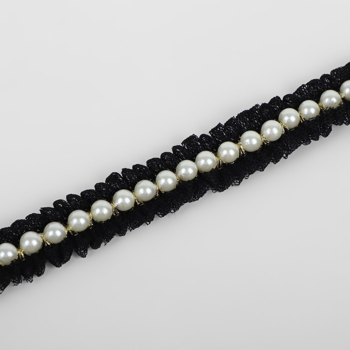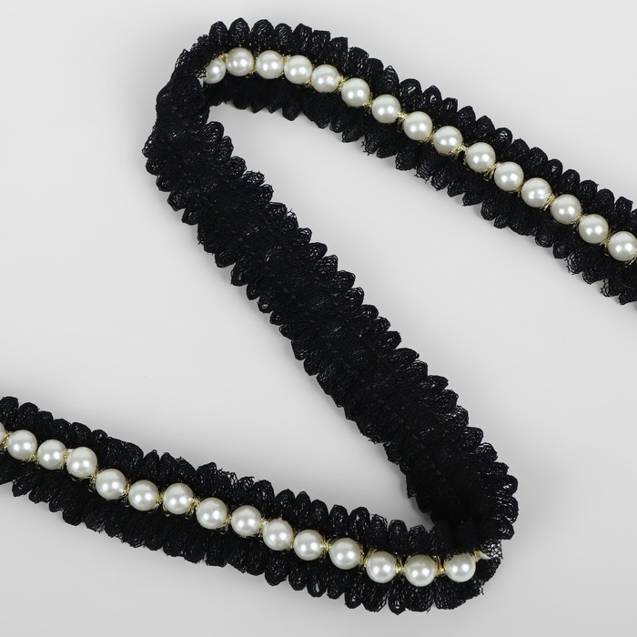 Рюш с бусинами, 20 мм, 4,5 ± 0,5 м, цвет чёрный/белый