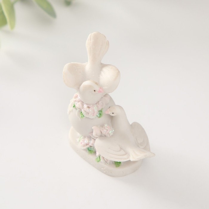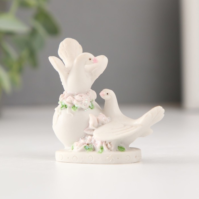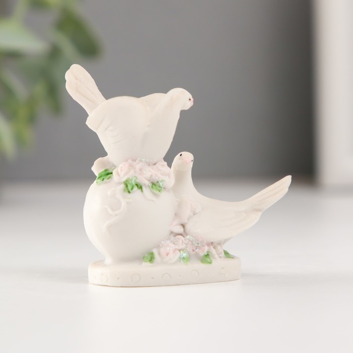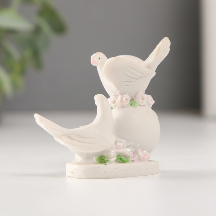 Сувенир полистоун "Два голубя на шаре с цветами" 6,4 см