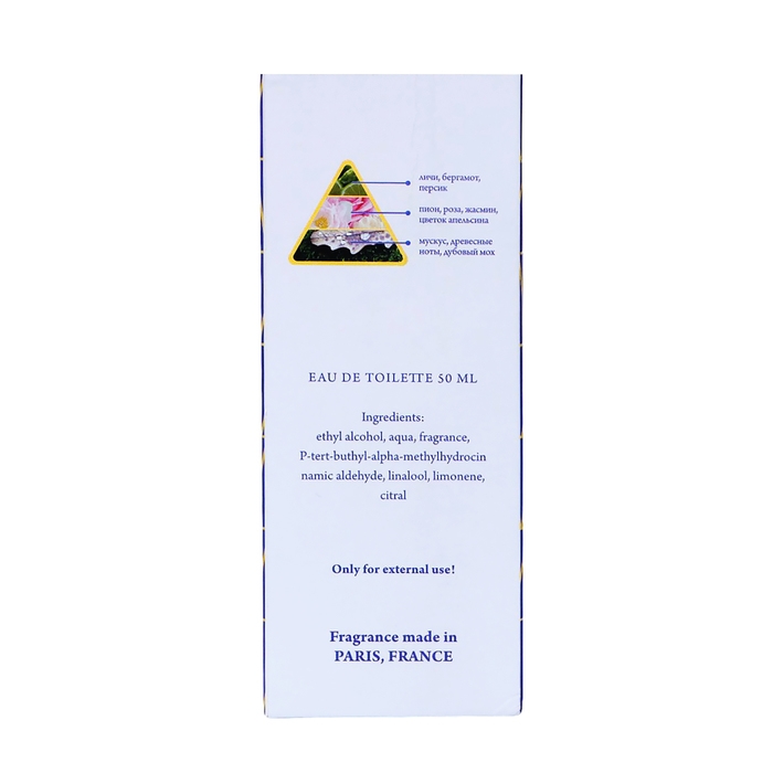 Ноты: бергамот, личи, персик, жасмин, пион, древесный аккорд, мускус, дубовый мох.