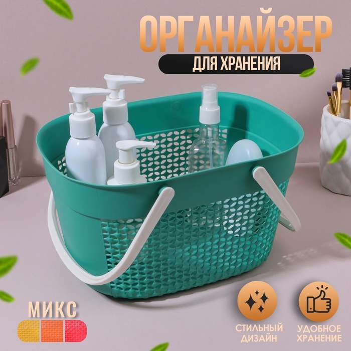 Органайзер для хранения, с ручками, 1 секция, 27 × 18 × 14,5 см, цвет МИКС