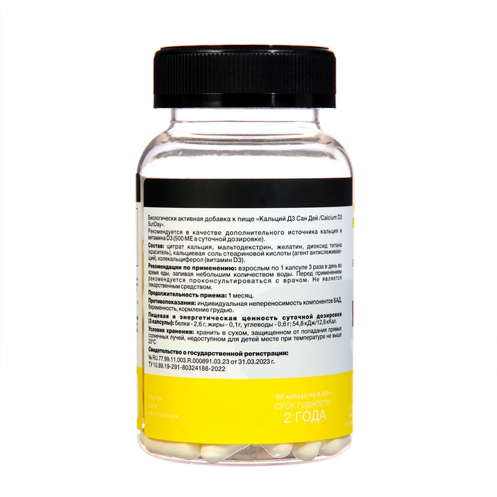 Кальций Д3 Сан Дэй - это биологически активная добавка к пище, которая содержит кальций и витамин Д3.
