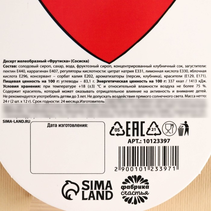 Мармелад в форме сосисок «Сосиски с пюрешкой», 24 г.