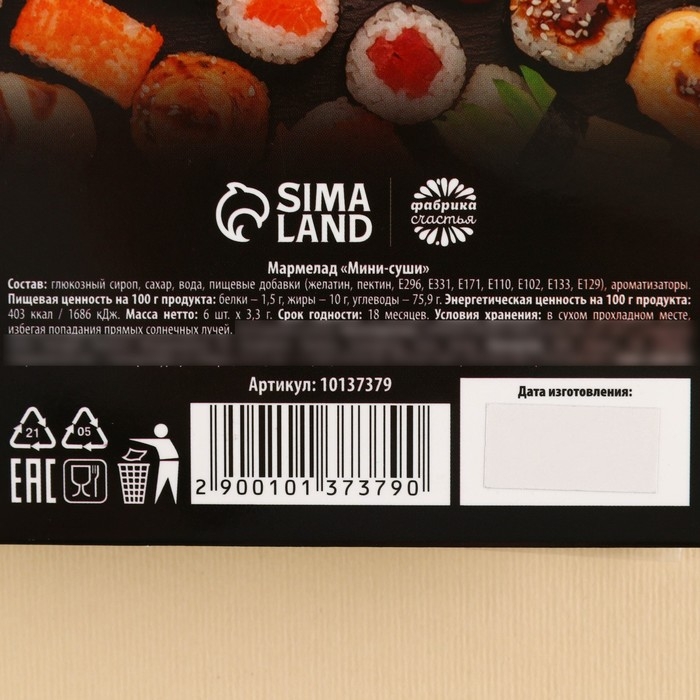 Мармелад мини суши «Ешь суши», 6 шт (19,8 г.)