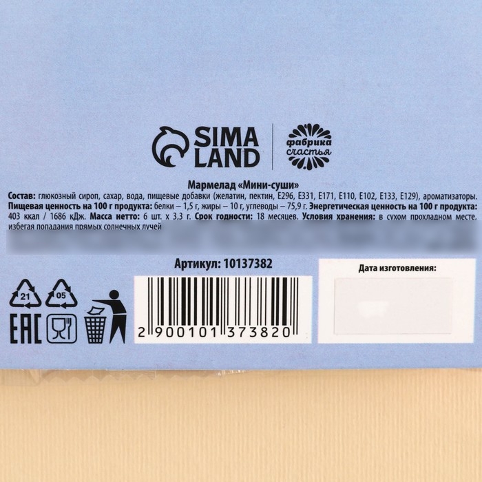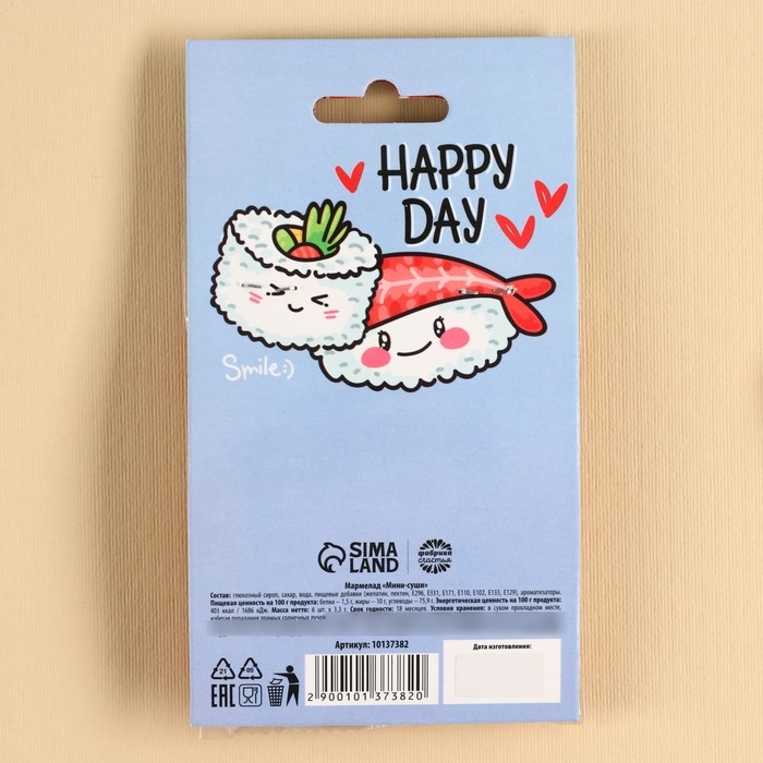 Мармелад мини суши «Счастливый день», 6 шт (19,8 г.)