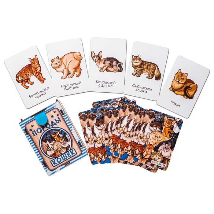 Набор карточек «Породы кошек» — развивающая игра для детей любого возраста. Эта игра идеально подходит для развития познавательного интереса, внимания, памяти, логического мышления. Также она помогает развивать умение соотносить свои действия с игровыми правилами.