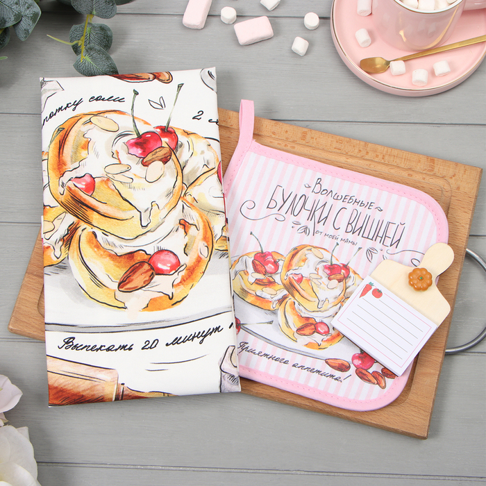 Набор подарочный «Булочки» полотенце 40х73 см, прихватка 19х19 см, магнит 11х7 см