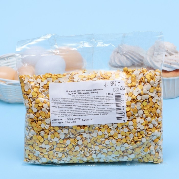 Кондитерская посыпка "Конфетти": золотая, белая, 500 г