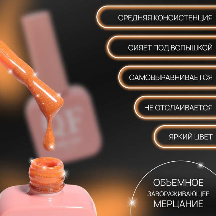 Глубокое сияние гель лака раскрывается при попадании на покрытие освещения. Уникальная формула лака с блёстками отражает всю силу лучей света, благодаря чему достигается эффект, будто ногти посыпаны магической пылью. Индикатор цвета на верху бутылька, поможет Вам подобрать идеальный цвет.