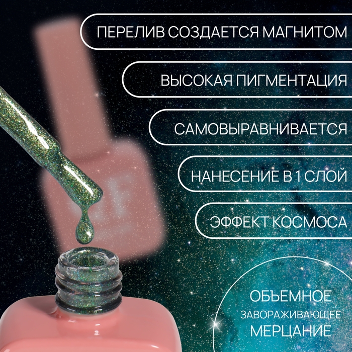 Гель лак для ногтей «CAT`S EYE SHINE», 3-х фазный, 10 мл, LED/UV, цвет зелёный (41)