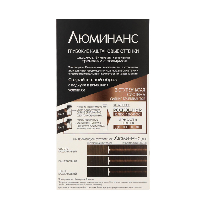 Эксперты Schwarzkopf воплотили последние тенденции мира моды в сочетании с профессиональным качеством окрашивания в оттенках Luminance. Создай свой образ с подиума в домашних условиях! Подчеркни свой стиль и приковывай взгляды благодаря Luminance, который представлен модными стойкими оттенками, сияющими как бриллиант. Формула Luminance с 2-ступенчатой системой сияние бриллиантов позволяет добиться восхитительной яркости цвета до 10 недель.