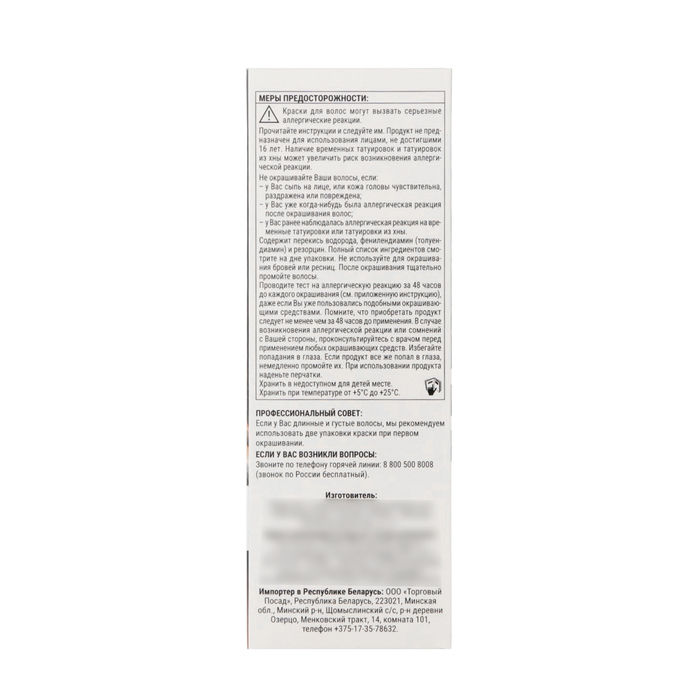 Способ применения: выдавите содержимое тюбика и флакона с проявляющей эмульсией в миску, тщательно перемешайте. Нанесите на волосы. После указанного в инструкции времени воздействия хорошо промойте волосы и нанесите Маску-Уход, находящуюся в упаковке.