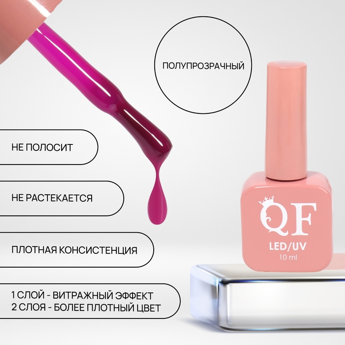 Гель лак для ногтей «STAINED GLASS», 3-х фазный, 10 мл, LED/UV, цвет (71)