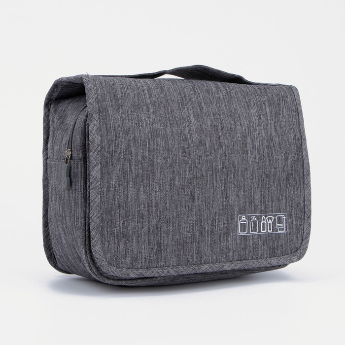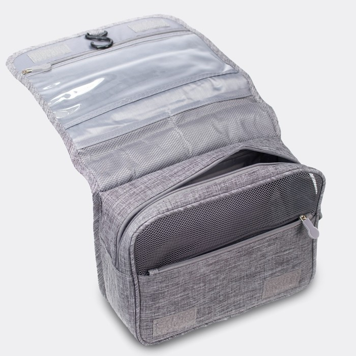 Косметичка-несессер на липучках, с крючком, цвет серый