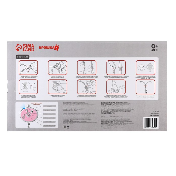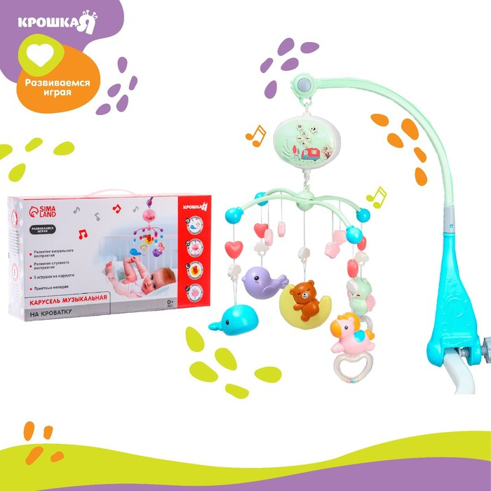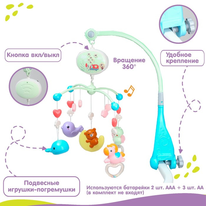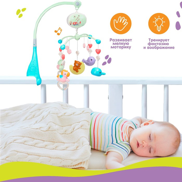 Мобиль музыкальный на кроватку «Мишка на луне», с проектором, цвет МИКС, Крошка Я
