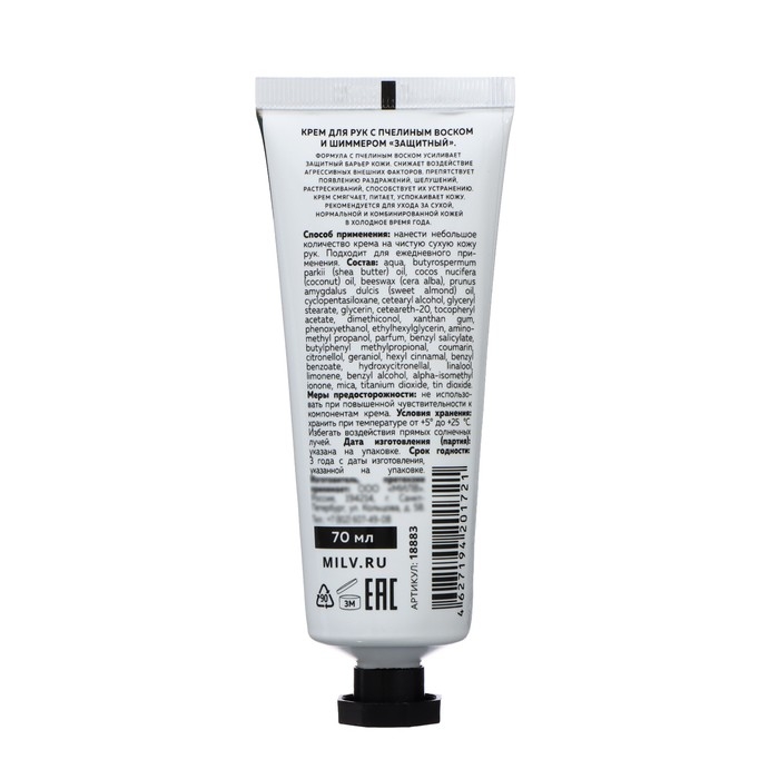 Крем для рук с пчелиным воском и шиммером защитный MILV арбуз, мускус, 70 мл