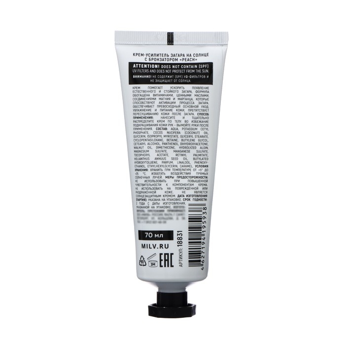 Крем-усилитель загара на солнце с бронзатором MILV персик, 70 мл